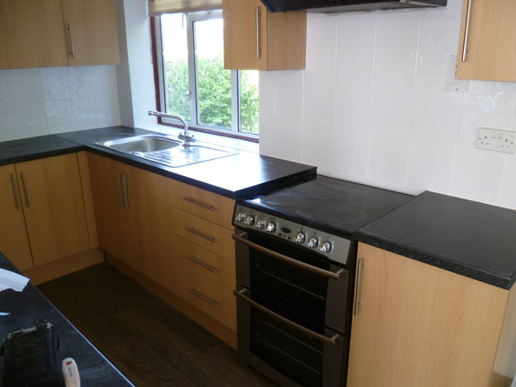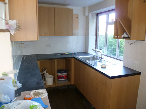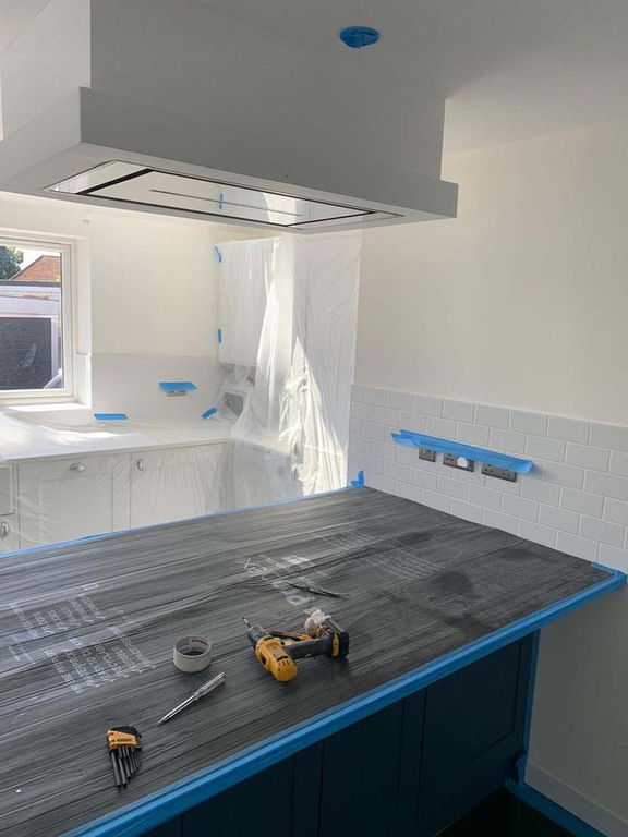 These are some before and after images of the progress of a complete kitchen installation in Marlow. As you can see the job involved a complete removal and making good followed by the installation of kitchen up to completion of decoration and flooring.